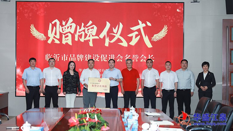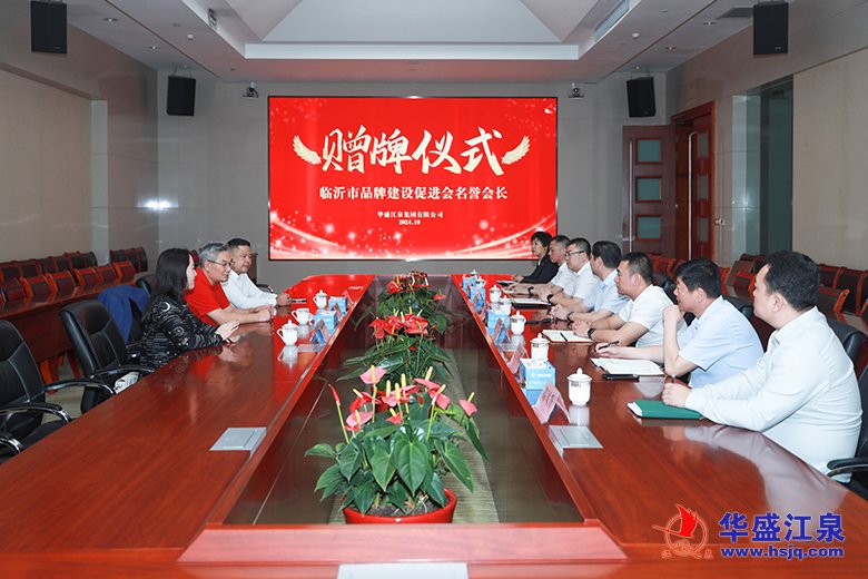 10月16日,臨沂市品牌建設促進(jìn)會(huì )在集團舉行名譽(yù)會(huì )長(cháng)單位贈牌儀式并進(jìn)行座談交流。臨沂市政府原副市長(cháng)劉賢軍,臨沂市品牌建設促進(jìn)會(huì )會(huì )長(cháng)胡守利、秘書(shū)長(cháng)劉亦珈,華盛江泉集團黨委書(shū)記、總經(jīng)理高洪路,集團高管張毅、孟濤、付冬明、林洪標,以及華盛江泉城大酒店、臨沂江泉肉制品有限公司負責人出席儀式。