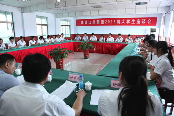 會(huì)上,首先由華盛江泉集團(tuán)人力資源部主任李新勝對(duì)大學(xué)生的主要工作情況進(jìn)行了簡(jiǎn)要介紹。隨后參會(huì)大學(xué)生圍繞自身成長(zhǎng)經(jīng)歷,結(jié)合當(dāng)前基層工作情況展開熱烈討論,積極建言獻(xiàn)策,分別從大學(xué)生檔案的管理、企業(yè)文化等方面進(jìn)行了交流探討,并提出了發(fā)展建議。各位領(lǐng)導(dǎo)針對(duì)員工在工作中的疑問和建議逐一進(jìn)行了解答。座談氣氛熱情洋溢、和諧融洽,充分展現(xiàn)了公司高層領(lǐng)導(dǎo)傾聽基層心聲、注重人文關(guān)懷的管理理念和員工求真務(wù)實(shí)、敬業(yè)愛崗的精神風(fēng)貌。