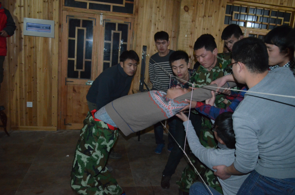 在晚上的訓(xùn)練科目穿越生死線中,每一名大學(xué)生都面臨著嚴(yán)峻的考驗,不能交談,不能觸網(wǎng),一人違規(guī),全體返回重新開始。隨著激情豪邁的音樂,32名隊員組成的團隊穿越生死線開始了,寒冷的山間一線之隔卻令大家汗流浹背。穿越過程中大家失誤連連,不斷的返回、受罰、從零開始,當(dāng)最后一名成員成功穿越時很多人留下了淚水,一種滿足感和成就感油然而生,每個人都從心底感謝隊友的支持與鼓勵。