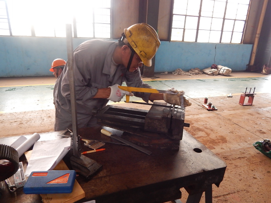 參加此次比賽的選手總共18名,共同進行減速機拆裝和限位塊制作的比賽角逐。為保證比賽的公平、公正和比賽秩序,寶恒鋼結(jié)構(gòu)專門成立了裁判組,并在比賽會場設置了候考區(qū)、裁判席及比賽區(qū),保證每位參賽人員都能夠?qū)P耐瓿杀荣愴椖。整場比賽,參賽人員保持高度的競技精神,爭分奪秒,全神貫注的投入到比賽中,在整齊干凈的工作臺上一顯身手。